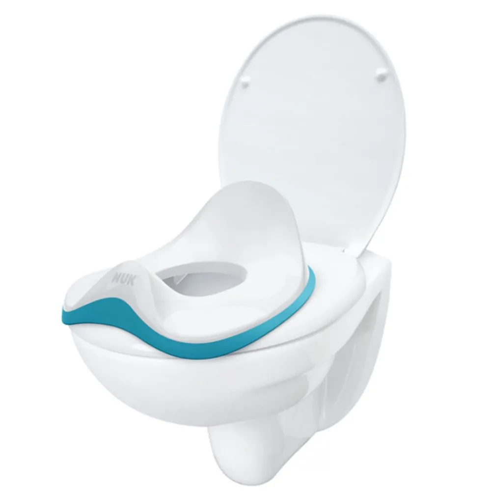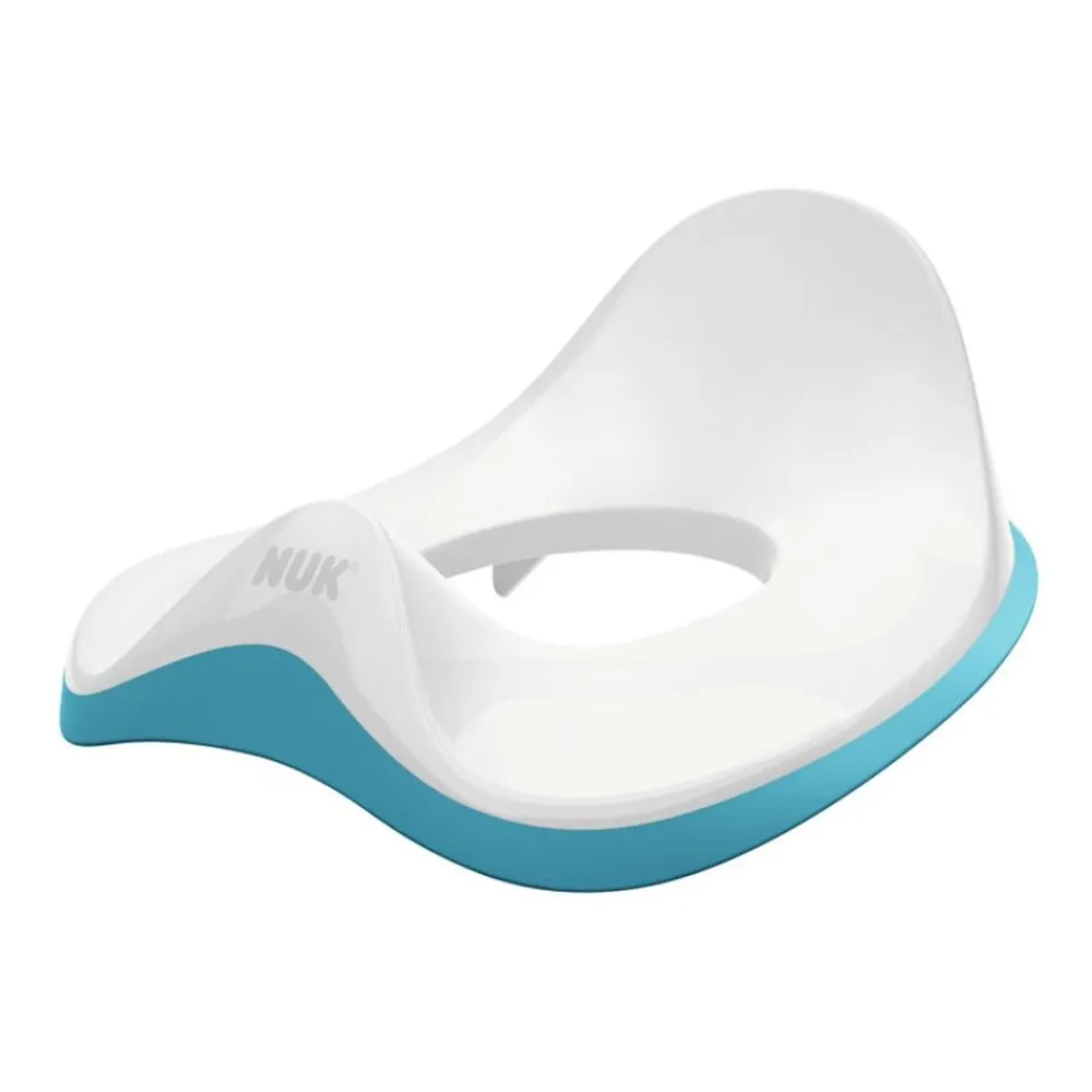NUK Toaletttrener er et stabilt sete fra NUK for barnet som trener på et vanlig toalettsete. Utstyrt med en gummikant under som holder setet på plass uansett toalettsete. Kan henges opp under lagring og er enkel å rengjøre. NUK Toalett Trainer trenersete har også beskyttende kanter for å forhindre sprut.