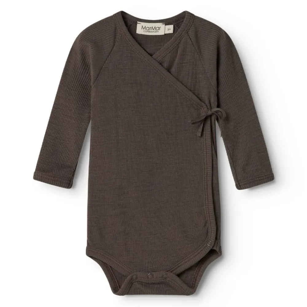 Denne langermede omslagsbodyen i deilig og myk merinoull er et perfekt valg for din lille. Den er laget av myke og naturlige materialer som skåner babyens sensitive hud, og sikrer dermed både komfort og trygghet. Bodyen lukkes praktisk med både trykknapper og bånd, noe som gjør den enkel å ta av og på.