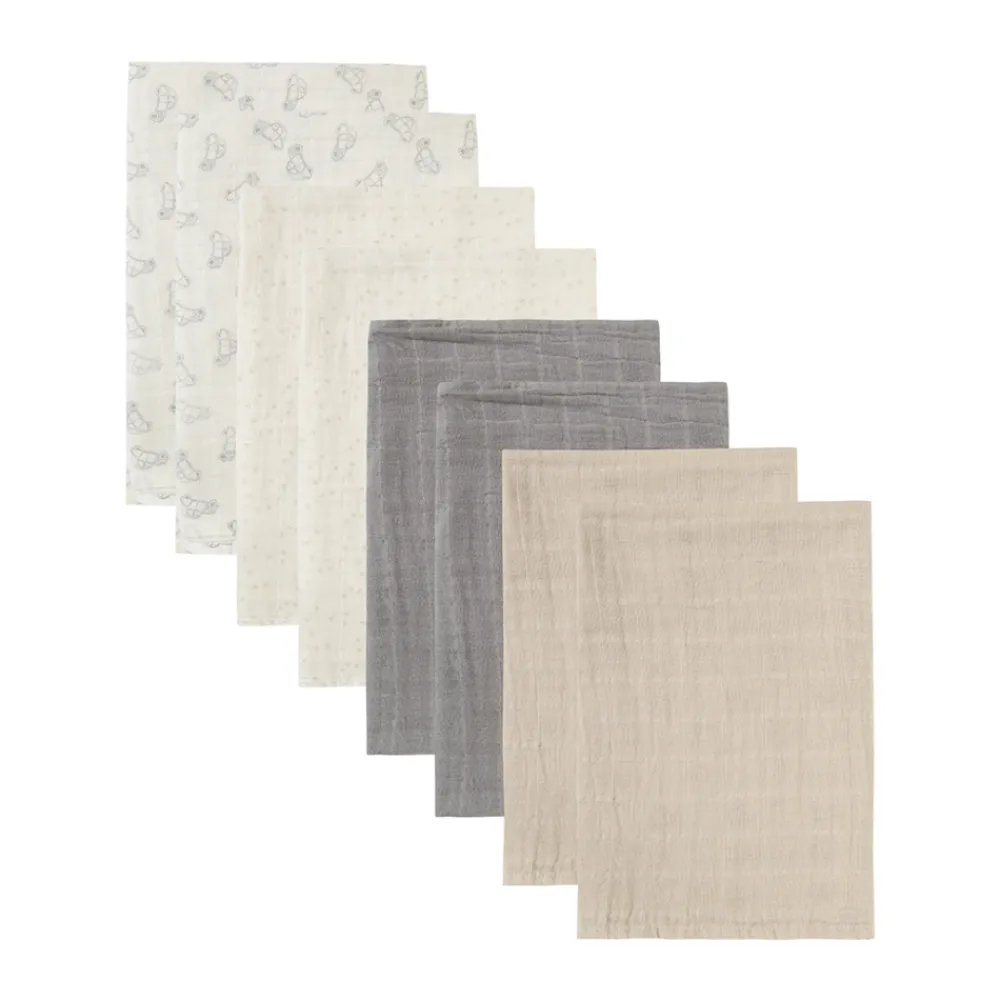 Praktiske gasskluter som kan brukes til mange formål. Gassklutene er laget av deilig økologisk bomull, og materialet er mykt og behagelig mot huden. De er flotte å bruke som gulpekluter, kosefille og underlag for å beskytte madrass og annet mot gulping og sikling.