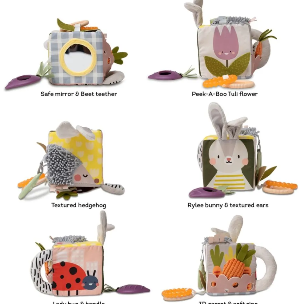 Denne aktivitetskuben er perfekt for å stimulere barnets sanser og motoriske ferdigheter. Den myke biteleken er ideell for små barn som er i tanningsfasen, og kan bidra til å lindre ubehag. De raslende kaninørene og clacker-ringer vil fange barnets oppmerksomhet og oppmuntre til utforskning og lek.