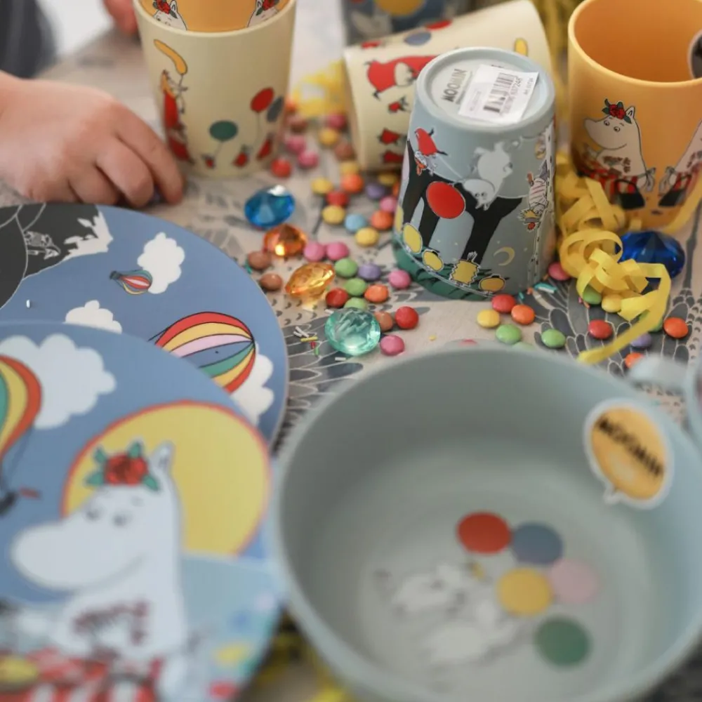 Dyp skål med mummimotiv er laget av RPET, som er et miljøvennlig og slitesterkt materiale. Rätt Starts produkter i RPET bidrar til redusert avfall og lavere karbonavtrykk. RPET tåler ikke mikrobølgeovn, men kan vaskes i oppvaskmaskin.