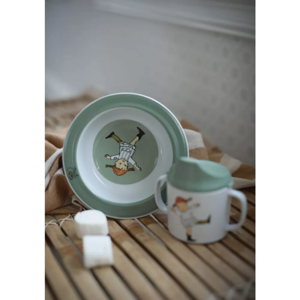 Sølefri Pippi Sirkus tutekopp med håndtak. Søleventilen i lokket gjør at koppen kan holdes opp ned uten å søle ut væsken. Lokket inneholder et søleventil laget av silikon («food grade») som gjør at kruset kan holdes opp ned uten å søle. Ventilen kan enkelt fjernes og vaskes. Når barnet vokser, og ikke lenger trenger et sølefritt krus, fjernes ventilen slik at barnet gradvis kan øve seg på å holde kruset riktig. Med tiden kan du fjerne lokket helt, kruset er like fint å bruke uten lokk.