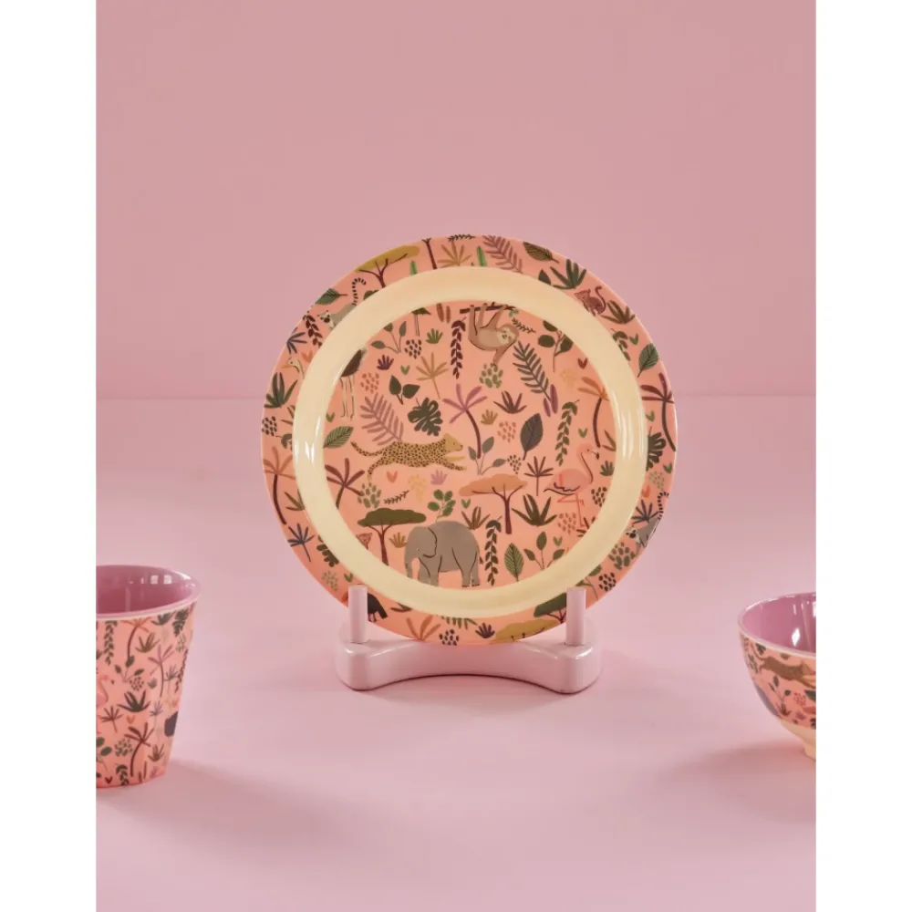 Den søteste barneservicetallerkenen i korallrosa med morsomme jungeldyr i fargerike detaljer. Tallerkenen er laget av slitesterk melamin, perfekt for både hverdag og fest – og like praktisk ute som inne.