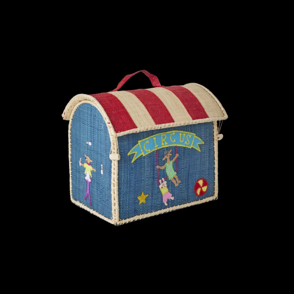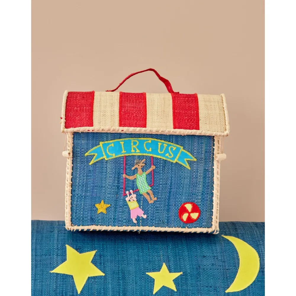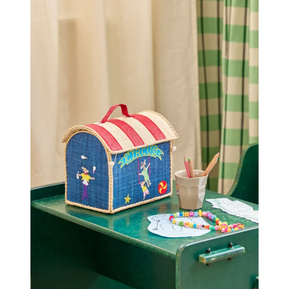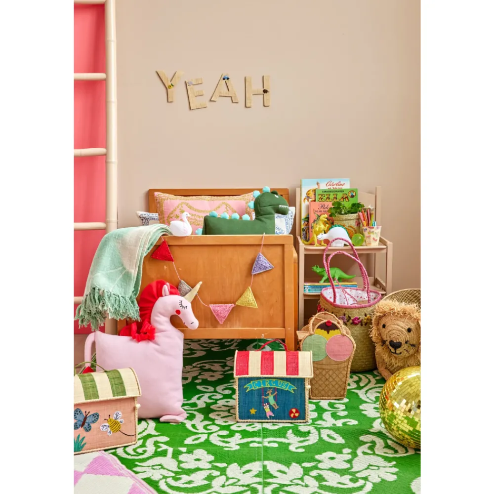 Denne herlige lille vesken er like sjarmerende som den er praktisk! Laget i naturlig og bærekraftig raffia, med et lekent sirkusmotiv og håndtak på toppen – perfekt for små hender. Barna kan bruke den til å bære med seg små skatter, leker eller hemmelige ting på eventyr, hjemme eller på farten.