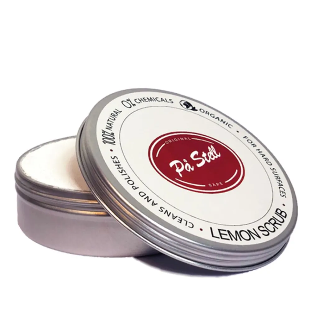 Sitronskrubb har de samme ingrediensene som Sitronsåpen, med en gnidnings- og poleringseffekt for å fjerne flekker og rengjøre harde overflater. Perfekt for å rengjøring fliser og interiør på badet, kjøkkenvask, plast, metaller og alle andre harde overflater uten å forlate en ripe.
