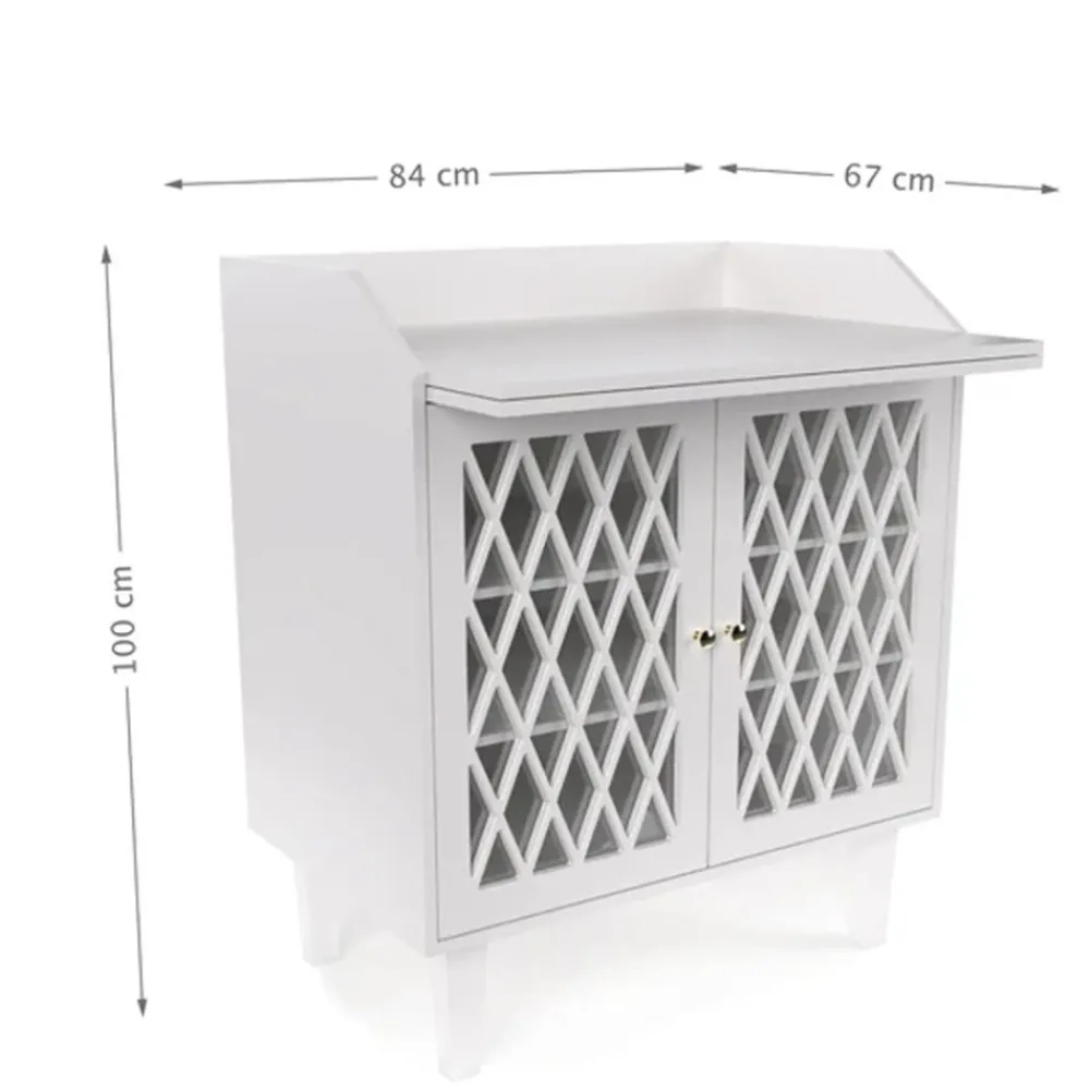 – Mål: Stellebord: H100xB84xD67cm Skap: H100xB84xD52cm
