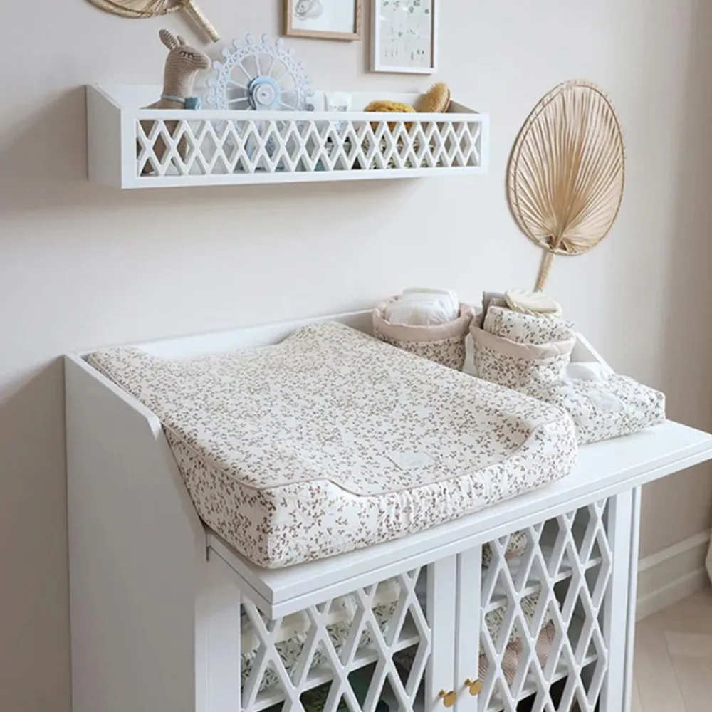 Dette stilfulle og eksklusive stellebordet kombinerer stor funksjonalitet med en tidløs estetikk, og gir både raffinement, komfort og stil til ethvert barnerom. Utformet for lang levetid og multifunksjon, kan stellebordet enkelt forvandles til et praktisk skap, perfekt for videre bruk i hjemmet ditt etter babyens behov.