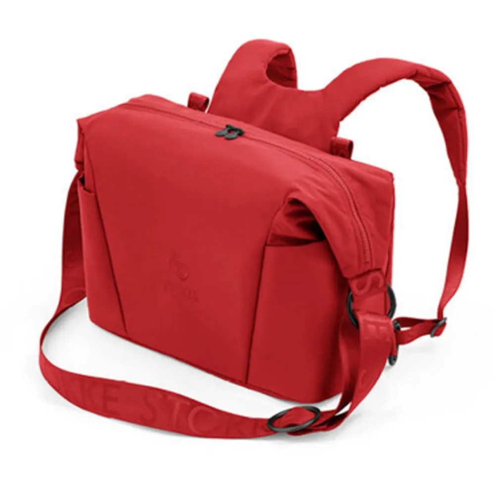 Stokke stelleveske kan festes til barnevognen, brukes som skulderveske eller ryggsekk. Vesken har mange lommer av forskjellig størrelse, blant annet en vanntett sidelomme som er veldig praktiskt. De ekstra myke materialene er UPF 50+, PFC-frie og vannavstøtende så de er lette å tørke av.