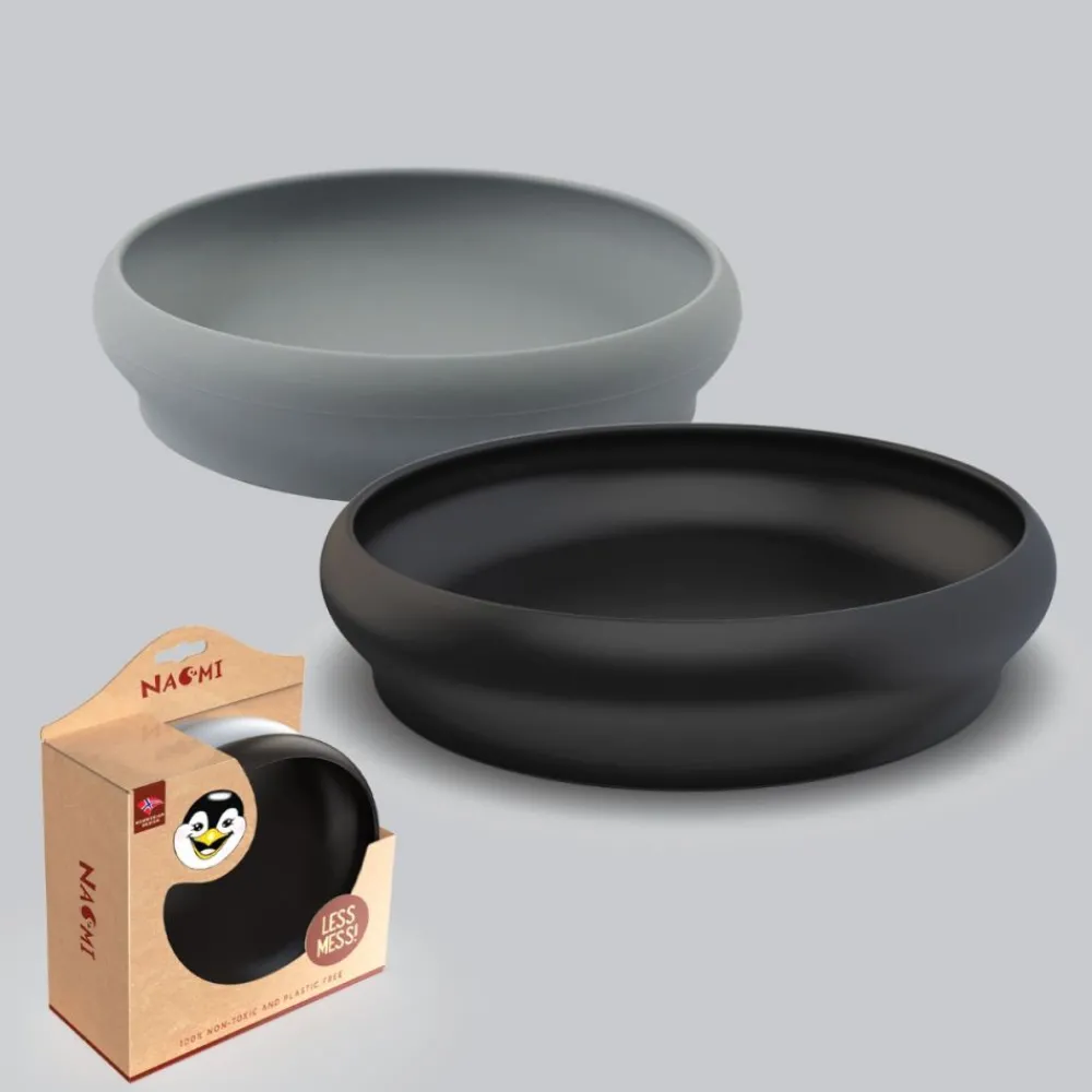 Naomi tallerken er en praktisk silikontallerken med en buet innover kant, for å enkelt fange opp maten på skjeen og ikke på bordet. Naomi tallerken står stabilt og stødig bordet. Nomi tallerken er er laget av rent naturlig silikon, som ikke avgir noen kjemiske stoffer. Den er 100% fri for plast.