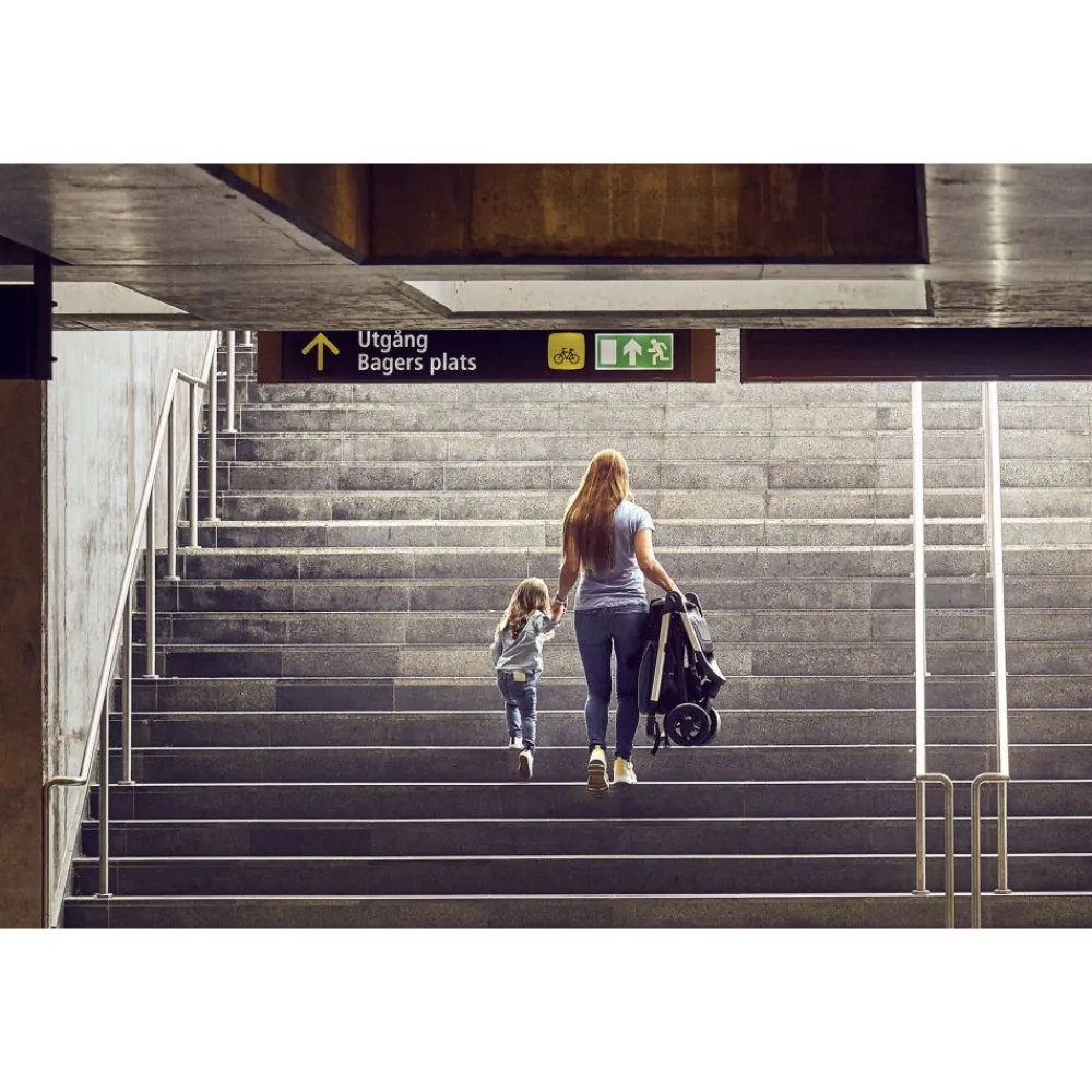 Justerbar kalesje med integrert forlengelse som verner mot lav sol og sørger for UV-beskyttelse (SPF 50+). Ventilert kalesje med gjennomsiktig netting gir barnet en behagelig tur uansett vær.