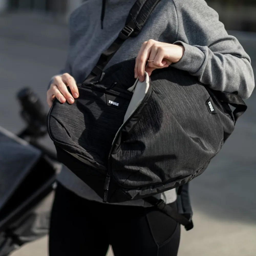 – Inkluderer en avtakbar, liten pute å kaste over skulderen – perfekt for et par bleier og kluter for rask skifting