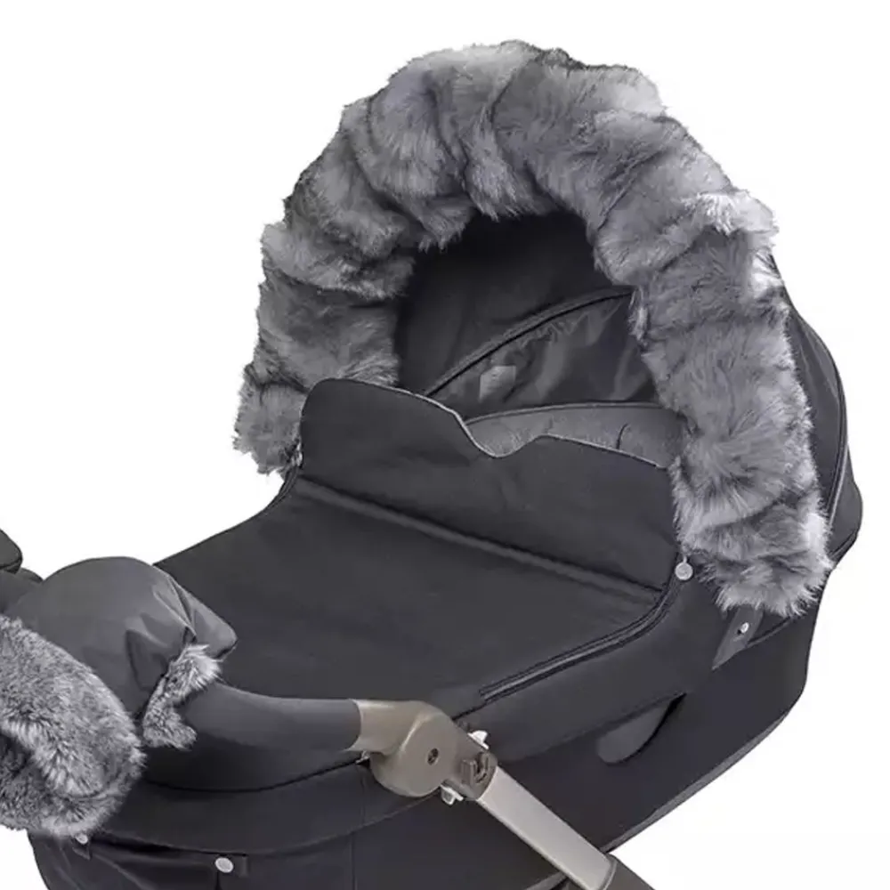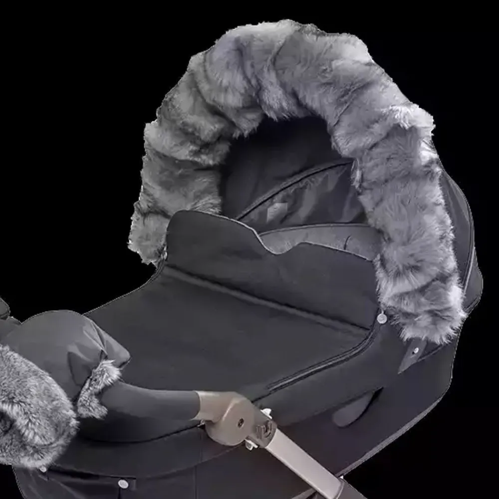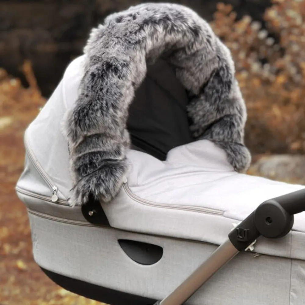 Tinkafu pelskant festes på kalesjen av vognen med magnet som er sydd inn i pelskanten. Pelskanten er universal og passer alle single vogner.