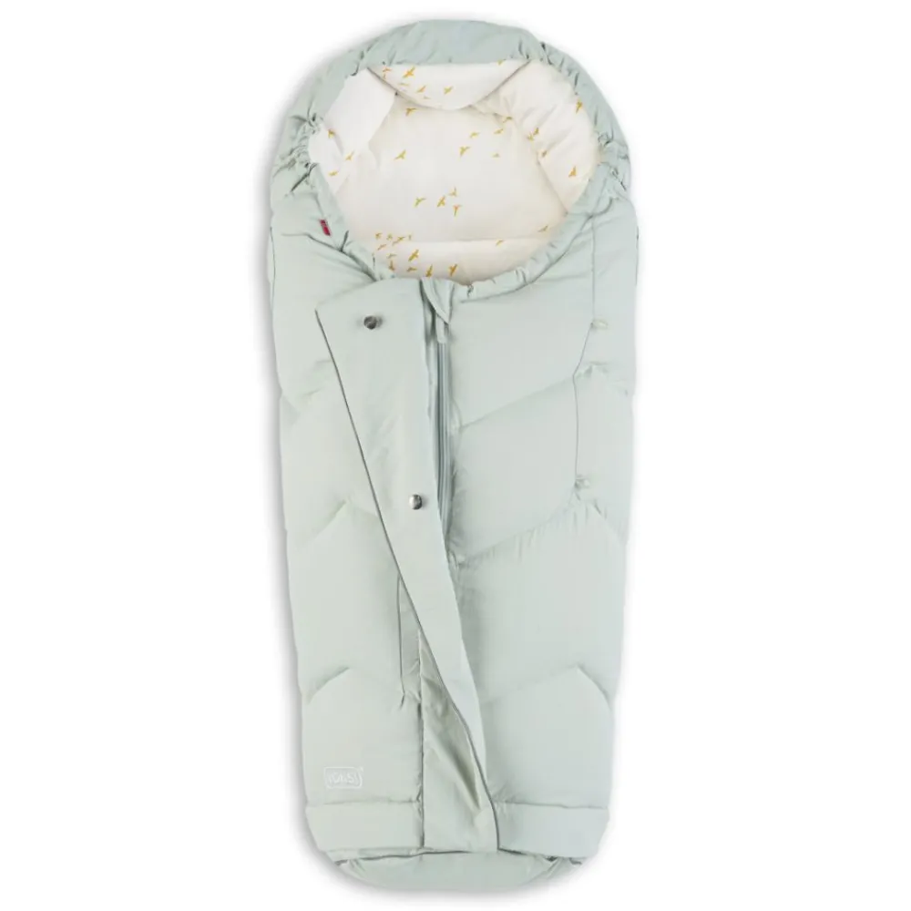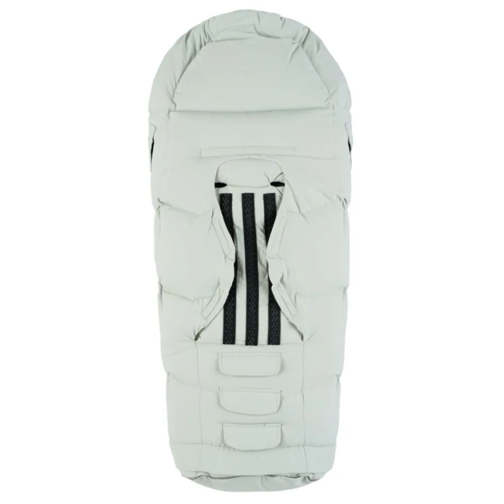 Når barnet ditt er lite og ikke fyller opp posen helt, kan du brette et teppe eller den dunfylte forlengerdelen og legge det i fotenden for å gi ekstra varme og komfort. Snoren rundt hodeområdet kan justeres etter værforhold og barnets preferanser. Du vil også finne et mykt hodeunderlag som både gir ekstra komfort for babyen og beskytter stoffet under hodet.